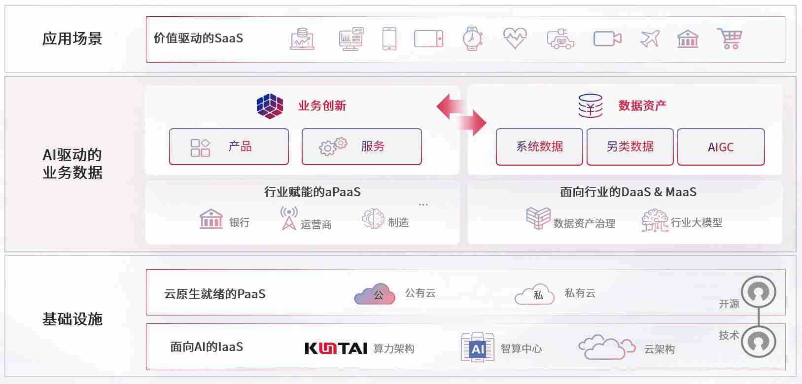 数字时代,,,,围绕企业数字化转型的关键要素,,,,人生就是搏数码开创性的提出数云融合战略和技术体系框架,,着力在云原生、、数字原生、、、AI原生和信创产业上架构产品和服务能力,,,,为处在不同数字化转型阶段的快消零售、、、、汽车、、金融、、、、医疗、、政企、、、教育、、、、运营商等行业客户提供泛在的敏捷IT能力和融合的数据驱动能力,,,构建跨界融合创新的数字业务场景和新业务模式,,,助力企业级客户建立面向未来的核心能力和竞争优势,,,,全面推动社会的数字化、、智能化转型升级。。。
